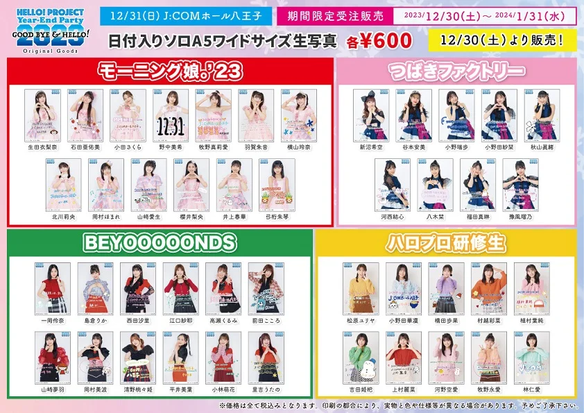 【UF Goods Land】Hello! Project Year-End Party 2023 ~GOOD BYE & HELLO ! ~ グッズ公開!