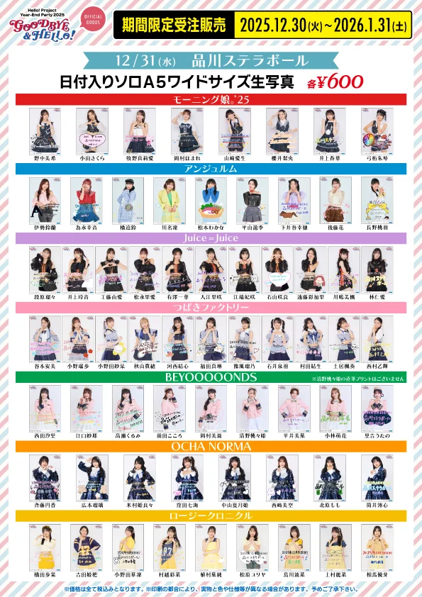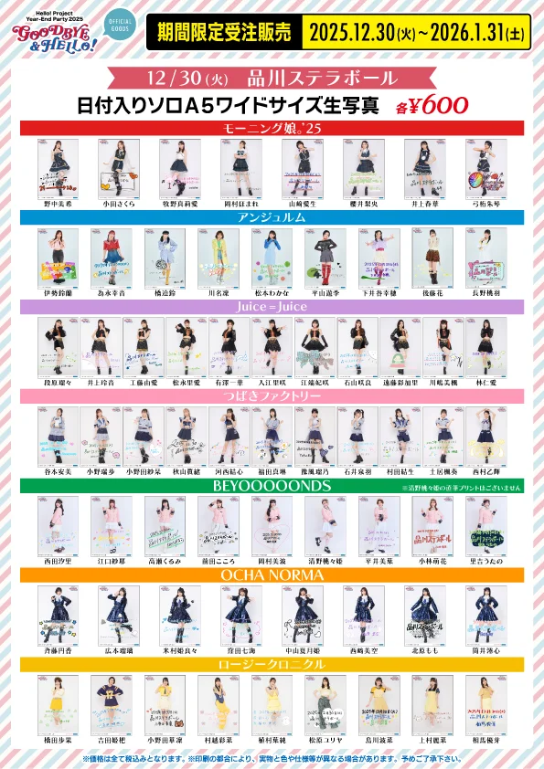 【UF Goods Land】Hello! Project Year-End Party 2025 ~GOOD BYE & HELLO ! ~ グッズ公開!