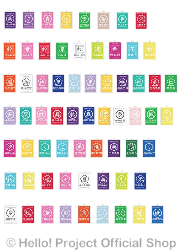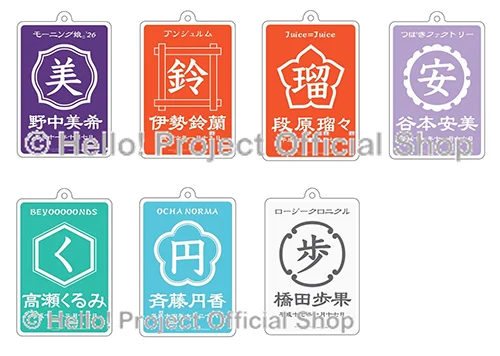 帆前掛け風にデザインされたメンバーカラーのアクリルキーホルダーです。