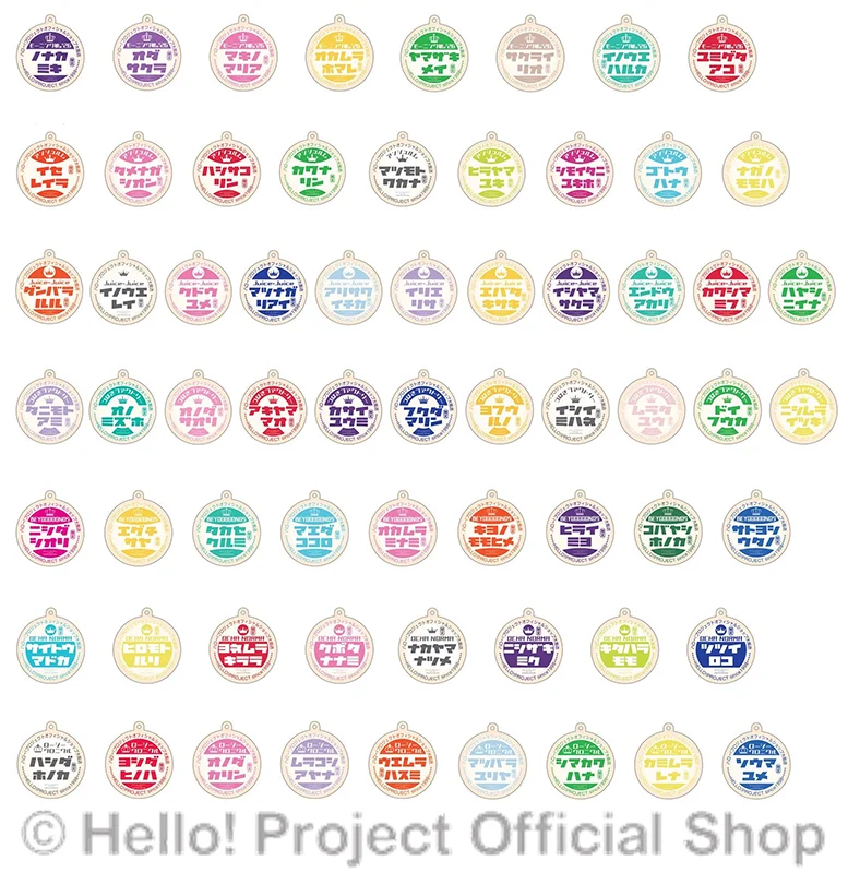 牛乳瓶の蓋風にデザインされたメンバーカラーのアクリルキーホルダーです。
