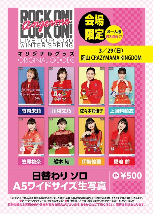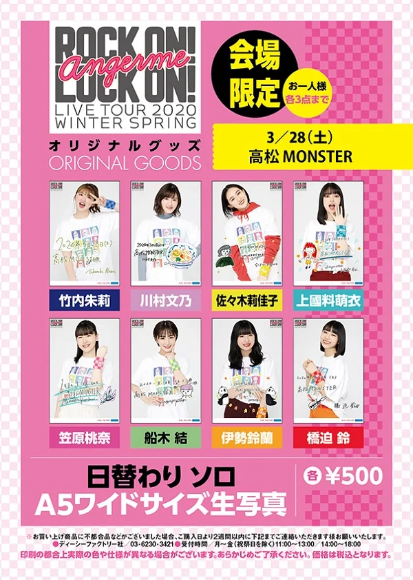 3/28高松 MONSTER、3/29岡山 CRAZYMAMA KINGDOM公演で販売を予定していた日替り生写真を期間限定で受注販売いたします。