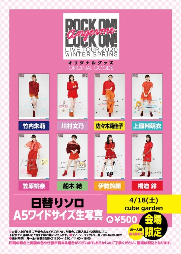 ★4/18cube garden、4/19小樽 GOLDSTONEで販売を予定していた日替り生写真を期間限定で受注販売いたします。