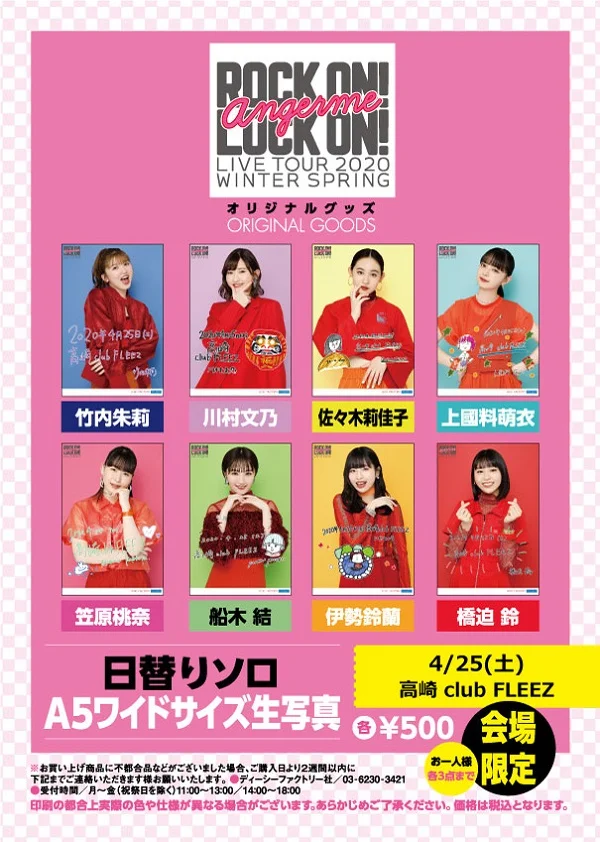 ★4/25高崎 club FLEEZ、4/26柏 PALOOZAで販売を予定していた日替り生写真を期間限定で受注販売いたします。