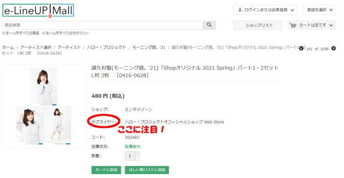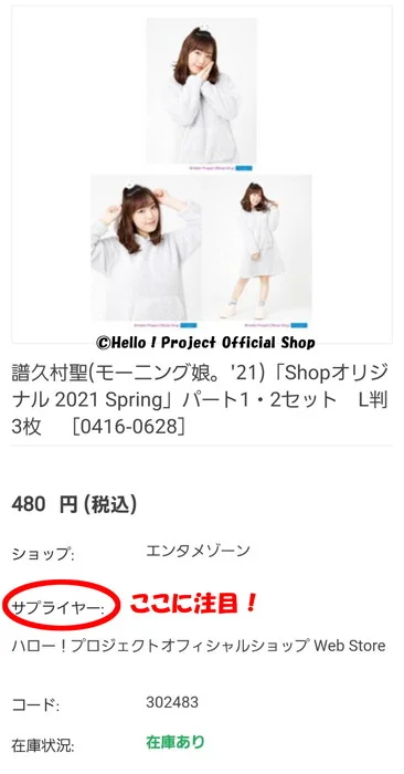 ハロー!プロジェクト オフィシャルショップ商品かの確認はページ内の『サプライヤー』がハロー!プロジェクト オフィシャルショップWebStore表記であれば対象です。