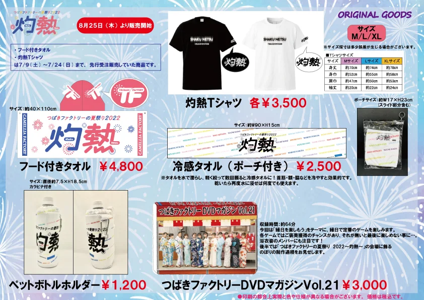 「つばきファクトリーの夏祭り 2022 ~灼熱~」公演 グッズ会場販売実施のお知らせとお願い