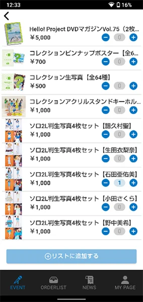 2)商品を選択し、詳細を確認のうえ、注文リストに追加する。