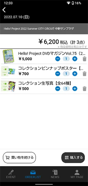 当アプリを使用してグッズ販売を実施しているコンサート・イベント会場でのみ利用可能となります。