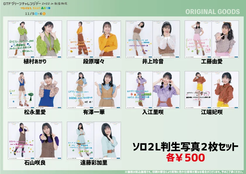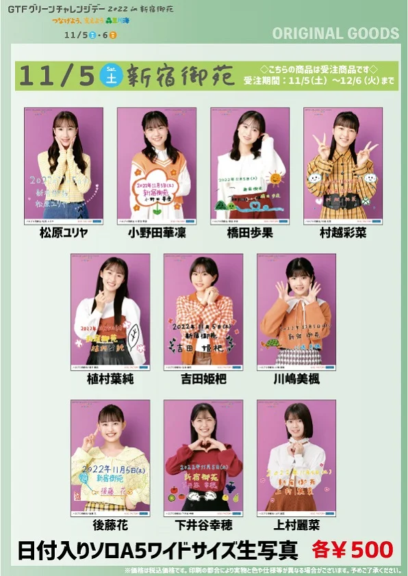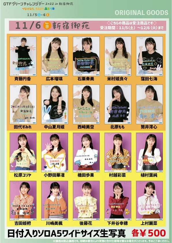 11/5~11/6開催予定の日付入りソロA5ワイドサイズ生写真を販売いたします。