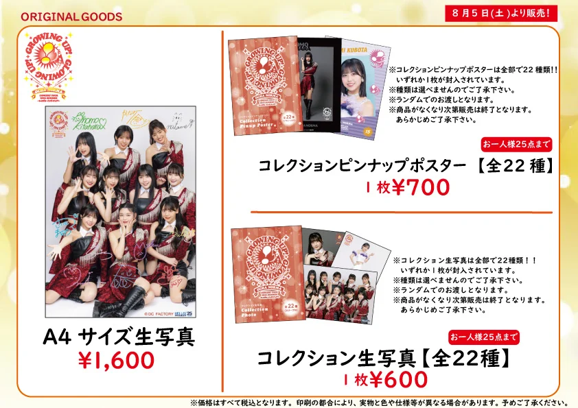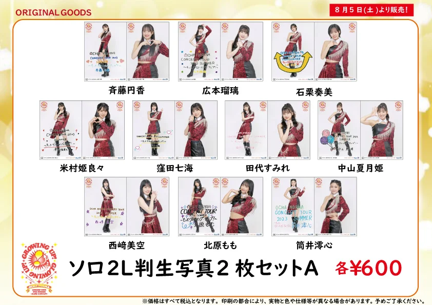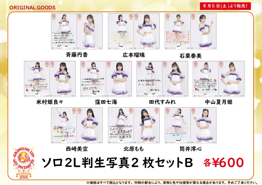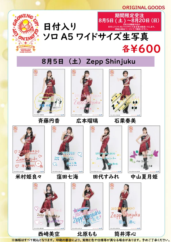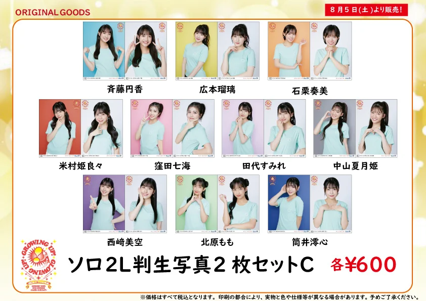 ※8/5開催予定の日付入りソロA5ワイドサイズ生写真を販売いたします。