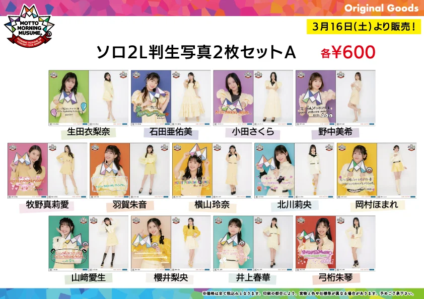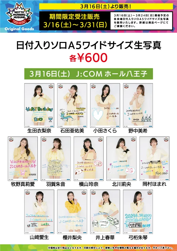 ※3/16~3/24開催予定の各会場の日付入りソロA5ワイドサイズ生写真を販売いたします。