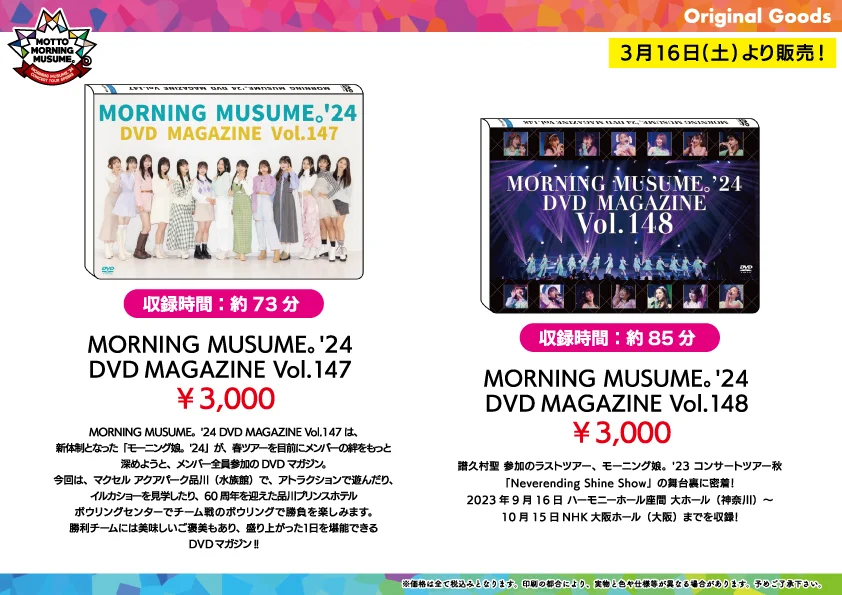 【UF Goods Land】モーニング娘。'24 コンサートツアー春 MOTTO MORNING MUSUME。グッズ公開!