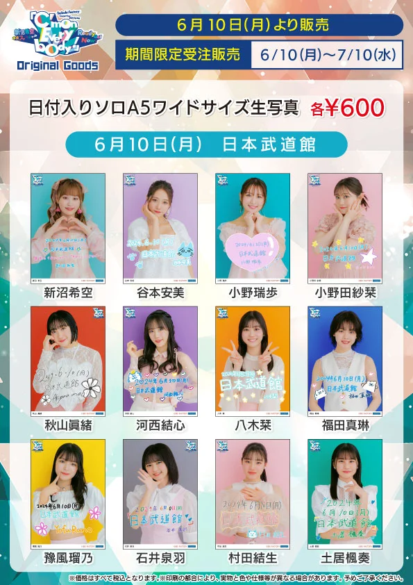 ※6/10開催予定の日付入りソロA5ワイドサイズ生写真を販売いたします。