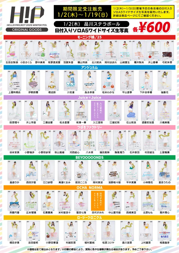 【UF Goods Land】Hello! Project 2025 Winter Fes.「各」/「合」グッズ公開!