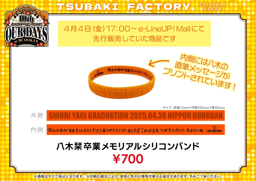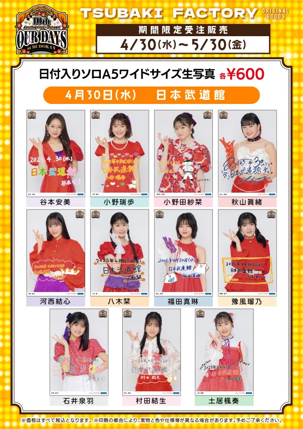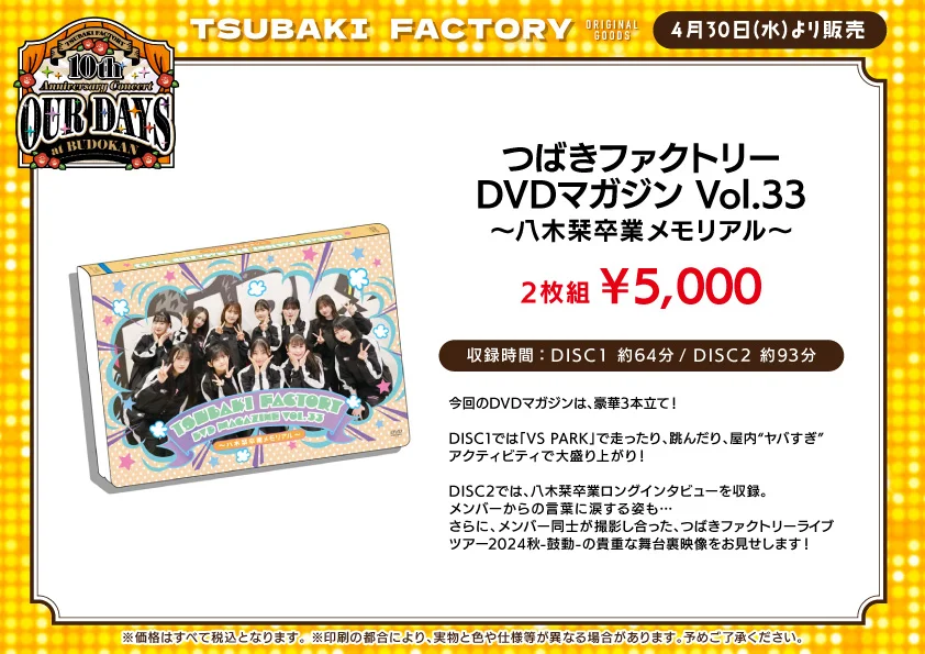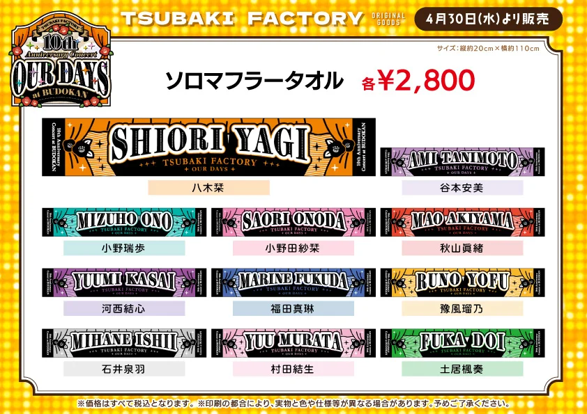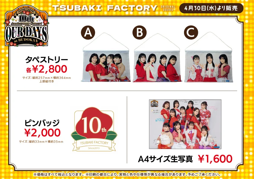【UF Goods Land】つばきファクトリー 10th Anniversary Concert at BUDOKAN ~OUR DAYS~ グッズ公開!