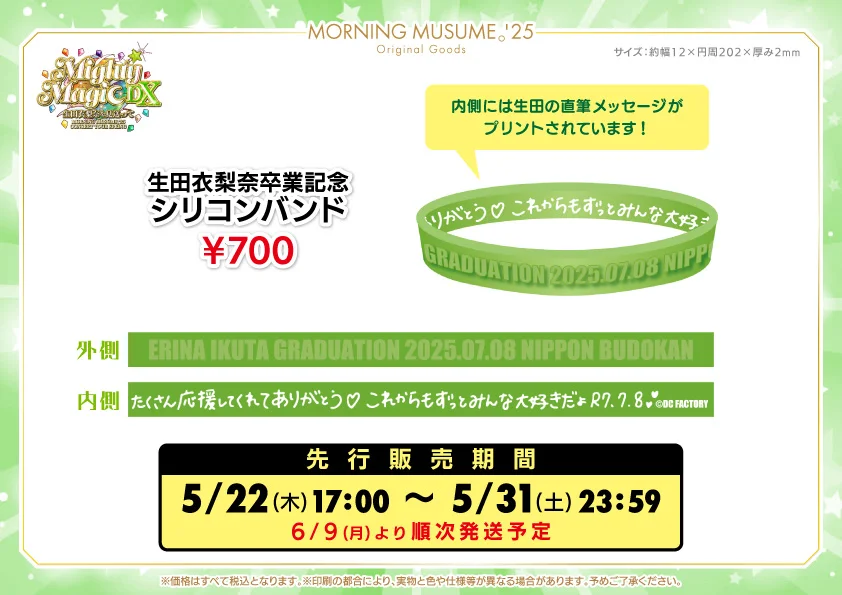 【UF Goods Land】モーニング娘。'25 コンサートツアー春 Mighty Magic DX~生田衣梨奈を見送って~ 先行発売のお知らせ