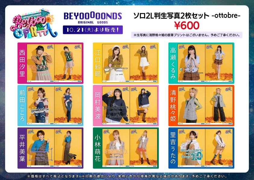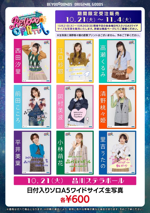 10/21~10/26開催予定の各会場日付入りソロA5ワイドサイズ生写真を販売いたします。