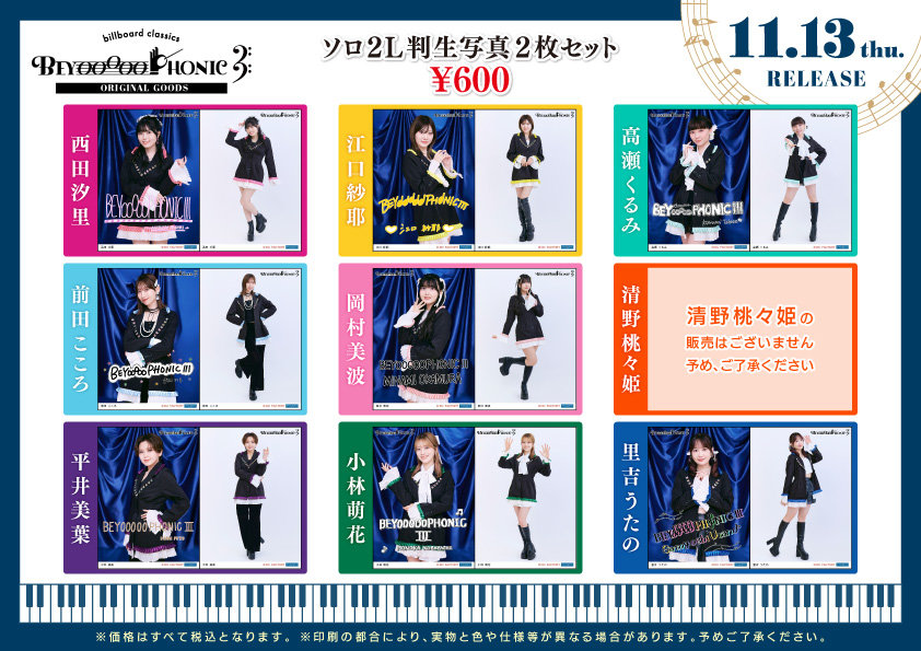 11/13~11/23開催予定の各会場日付入りソロA5ワイドサイズ生写真を販売いたします。
