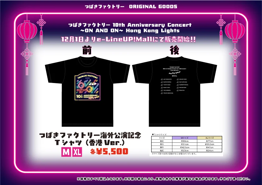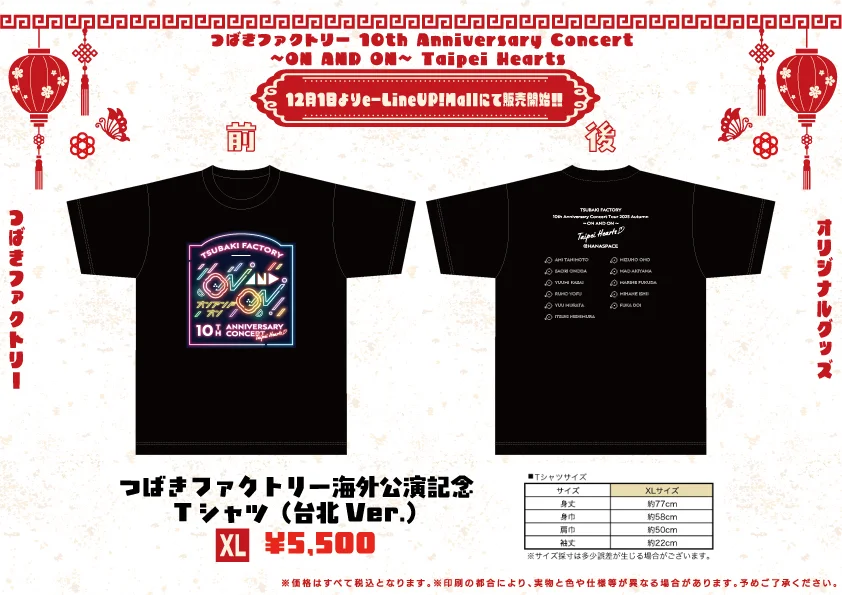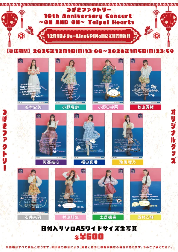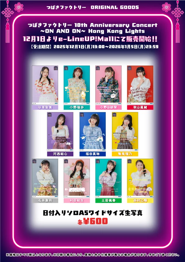 つばきファクトリー 10th Anniversary Concert ~ON AND ON~ Hong Kong Lights/Taipei Hearts グッズを2025年12月1日(月)13:00より販売します!