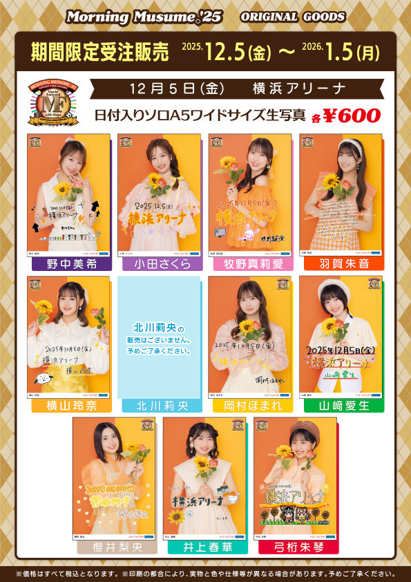 ★日付入りソロA5ワイドサイズ生写真、ソロ2L判生写真、2L判生写真を期間限定で受注販売いたします。