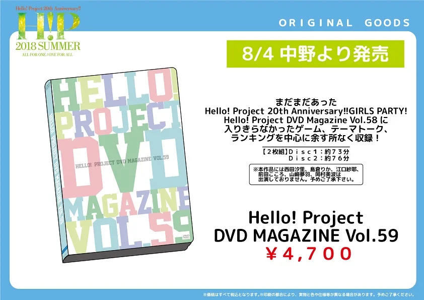 【UF Goods Land】Hello! Project 20th Anniversary!! Hello! Project 2018 SUMMER ~ALL FOR ONE~ ~ONE FOR ALL~グッズ公開!
