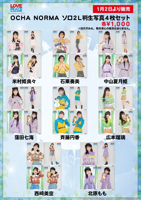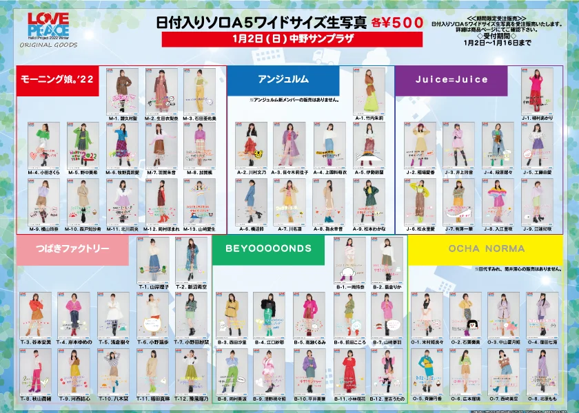 ※1月2日~1月15日開催予定の各会場の日付入りソロA5ワイドサイズ生写真を販売いたします。詳細は商品ページにてご確認下さい。