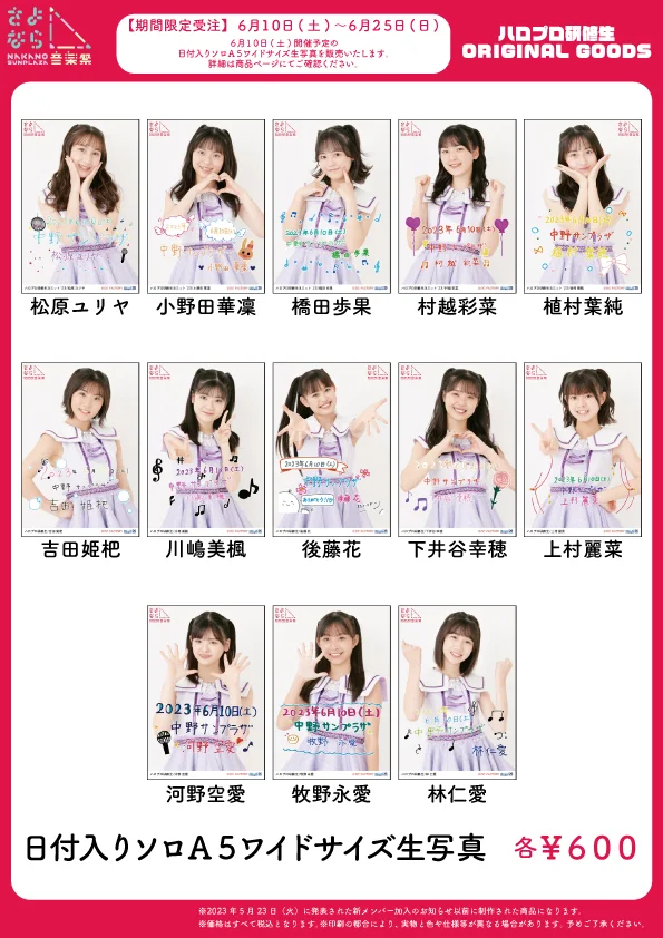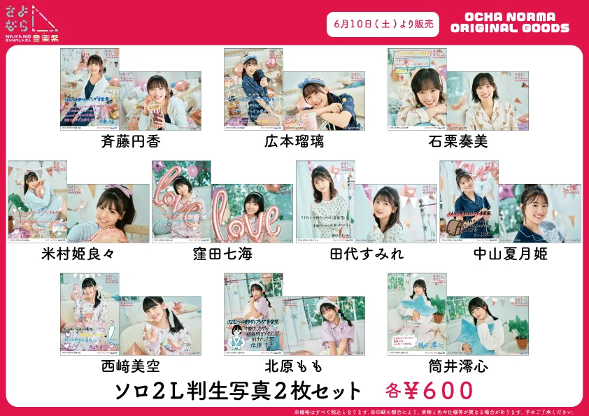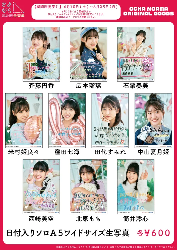 ※6/10開催予定の日付入りソロA5ワイドサイズ生写真を販売いたします。