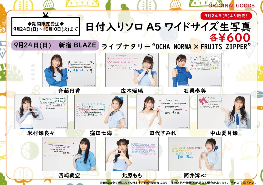 【UF Goods Land】「ライブナタリー OCHA NORMA × FRUITS ZIPPER」「ライブナタリー OCHA NORMA × でんぱ組.inc」 グッズ公開!