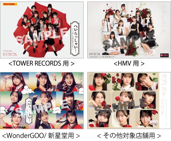 2025年3月19日(水)に発売される、ロージークロニクル 1stシングル『へいらっしゃい!~ニッポンで会いましょう~/ウブとズル』の初回生産限定盤A・B・SP及び通常盤A・B・Cを下記店舗にてお買い求めいただいたお客様に先着でオリジナル特典をプレゼントいたします。