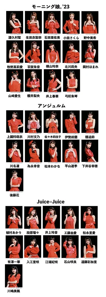 モーニング娘。'23、アンジュルム、Juice=Juice、つばきファクトリー、BEYOOOOONDS、OCHA NORMAまでハロー!プロジェクトをまるわかり!メンバーの魅力あるビジュアルはもちろん、新加入した井上春華(モーニング娘。'23)、弓桁朱琴(モーニング娘。'23)、下井谷幸穂(アンジュルム)、後藤花(アンジュルム)、川嶋美楓(Juice=Juice)のソロQ&Aも掲載!