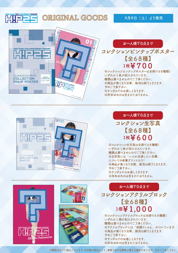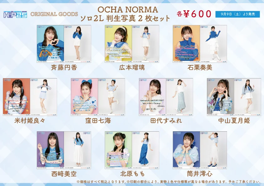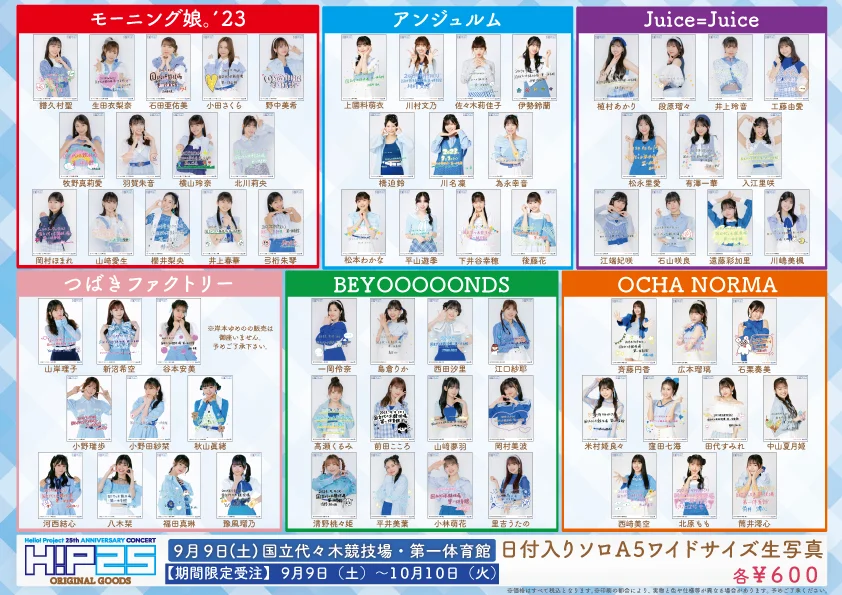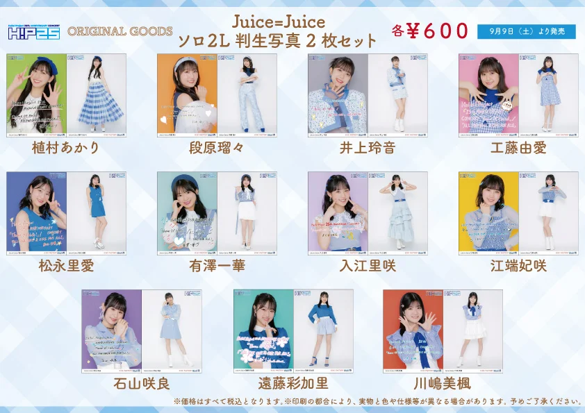9/9~9/10開催予定の日付入りソロA5ワイドサイズ生写真を販売いたします。