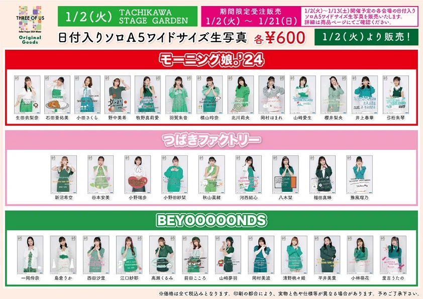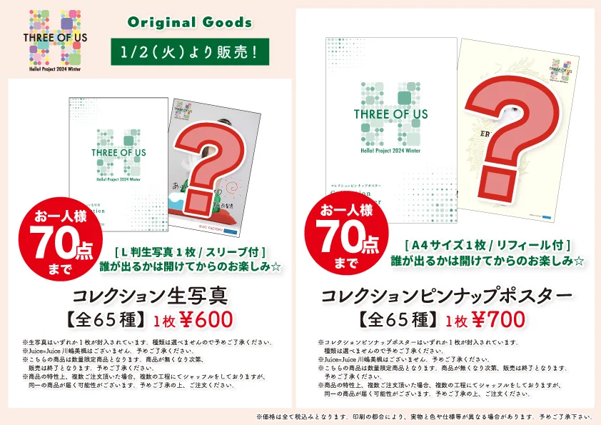 【UF Goods Land】Hello! Project 2024 Winter ~THREE OF US~ グッズ公開!