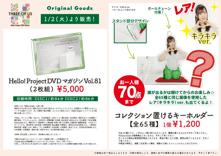 【Hello! Project 2024 Winter ~THREE OF US~】の商品「Hello! Project DVDマガジンVol.81」か