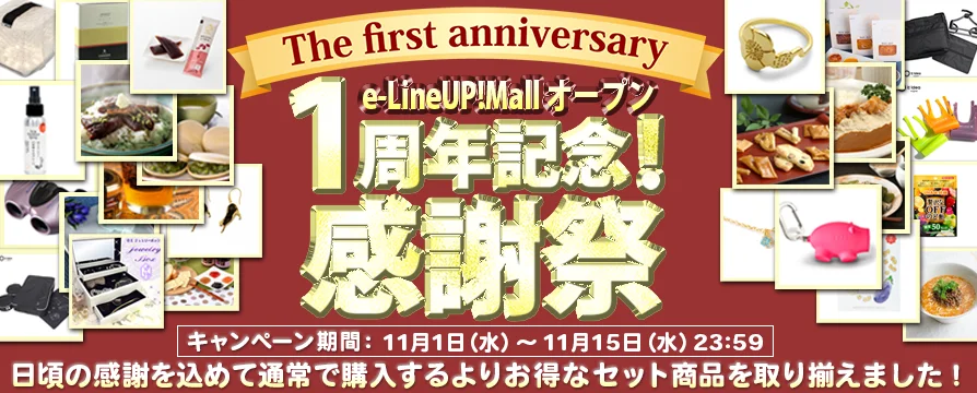 皆様のお陰をもちまして、e-LineUP!Mallはオープンから無事1周年を迎えることができました。