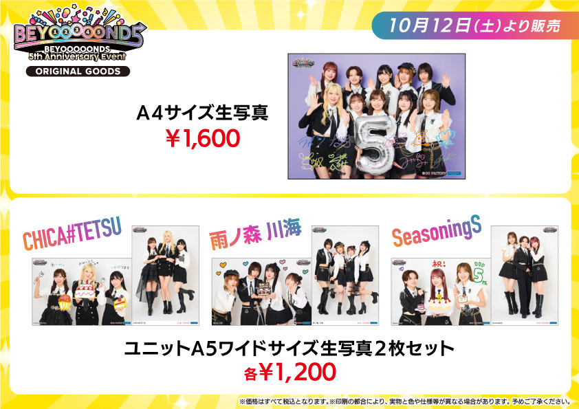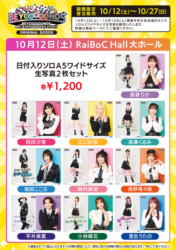 ※10/12~10/19開催予定の日付入りソロA5ワイドサイズ生写真を販売いたします。