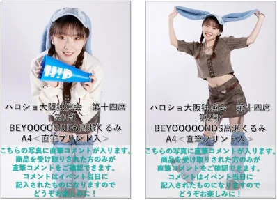 参加対象商品「高瀬くるみ来店記念A4写真」第1部、第2部(各税込2,800円)の中から1点をご購入いただきました方先着で、5/1(金)大阪店イベント参加券つき商品引換券を1枚お渡しいたします。