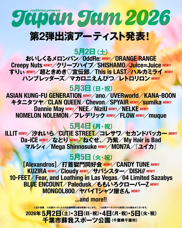 「JAPAN JAM 2026」に、Juice=Juiceの出演が決定いたしました!! 【日程】5月2日(土) 【会場】千葉市蘇我スポーツ公園(千葉県千葉市) ※詳細はJAPAN JAM 2026公式サイトをご確認ください。