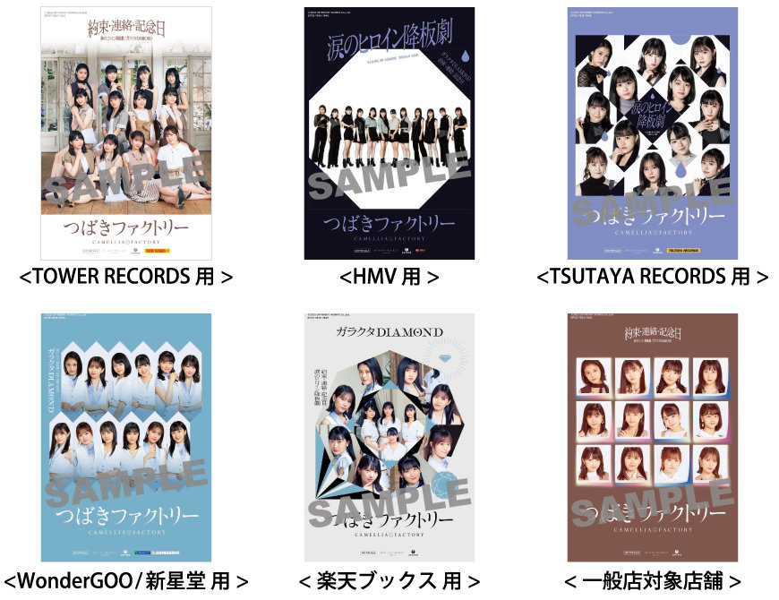 つばきファクトリー 11/17発売 8thシングル『涙のヒロイン降板劇/ガラクタDIAMOND/約束・連絡・記念日』のリリースを記念して、下記の店舗にて「メンバー直筆コメント&サイン入りA2サイズポスター」を掲示いたします。
