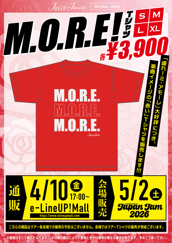 4/17(金)Juice=Juice LIVE TOUR 2026 UP TO 11公演に先駆けて、4/10(金)17:00より、Tシャツをe-LineUP!Mallで先行販売いたします!