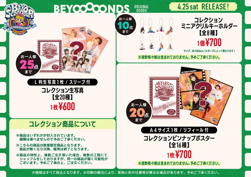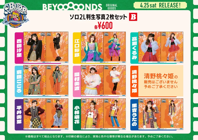 ※e-LineUP!Mallでは「BEYOOOOONDS CONCERT TOUR 2026 SPRING [BEYOSCOOOOOPE]」ツアー最終公演日から期間限定で各公演の日付入りソロA5ワイドサイズ生写真の受注販売を予定しております。