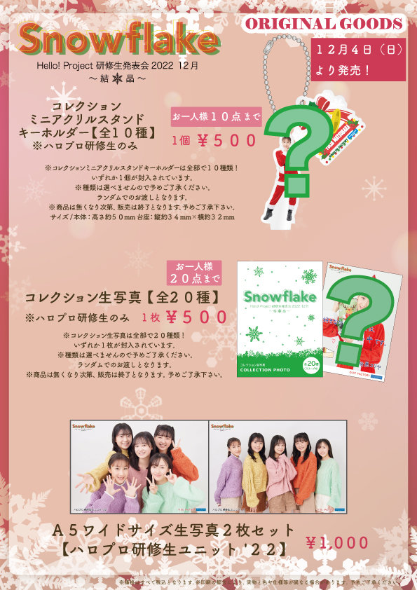 【UF Goods Land】Hello! Project 研修生発表会 2022 12月 Snowflake~結晶~ グッズ公開!